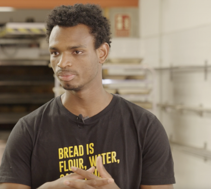 Es mediodía y Djogo acaba su jornada laboral mientras los envíos de Panic llegan a su destino. El proceso de elaboración y envío del pan es una buena metáfora del trabajo que se hace en este programa de la Fundación ”la Caixa”. «El pan se hace en distintas culturas y civilizaciones, con diferentes formas», observa Padrón. «Es un trabajo manual donde hay que amasar, donde los tiempos son muy importantes. Para mí, eso ilustra todo lo que representa el proceso migratorio y de inserción sociolaboral».